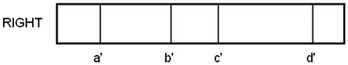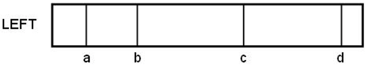features in the left image, labeled a,b,c,d, in order of their appearance