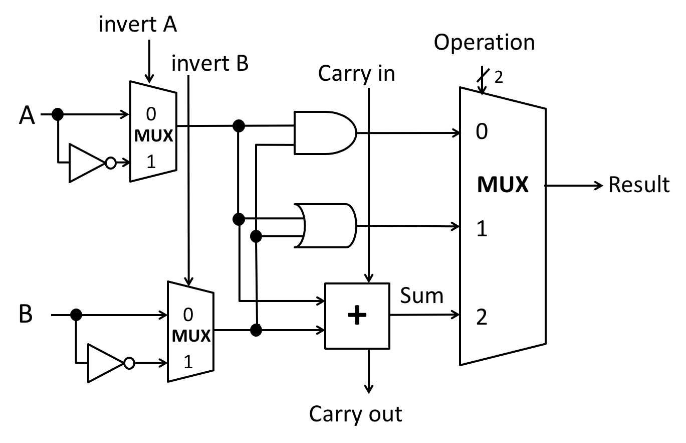 invert Binputs of all of the 1-bit ALUs; and - the carry-in of the least-significant bit ALU.
