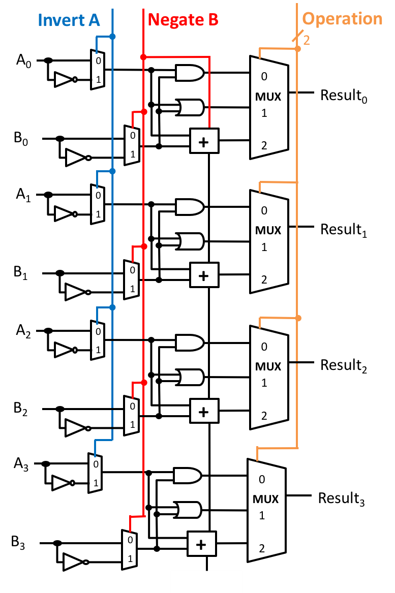 - From left to right: Invert A, Negate B, Op1, Op0.