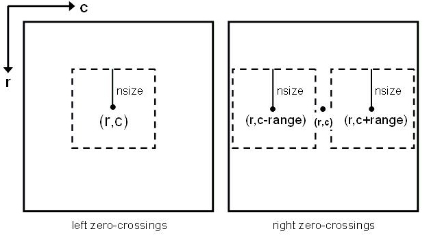 w = 4 works well), compute the zero-crossings with the stereoMatch