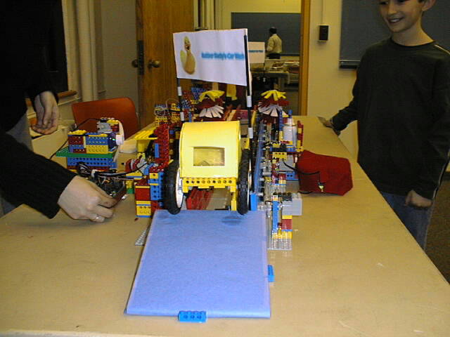 bubble-blowing mechanism. This soaps the car. Then the car hits