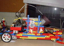We started with Legos, a Handy Board, some wheels, two touch sensors, and a reflectance sensor, added some elbow grease, and came up with this - naked Templeton. |