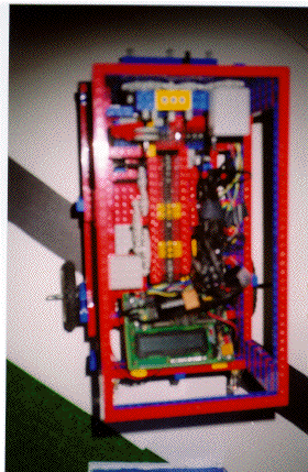 The inside of the Senate Bus, including HandyBoard, conveyor belts and kicker.
